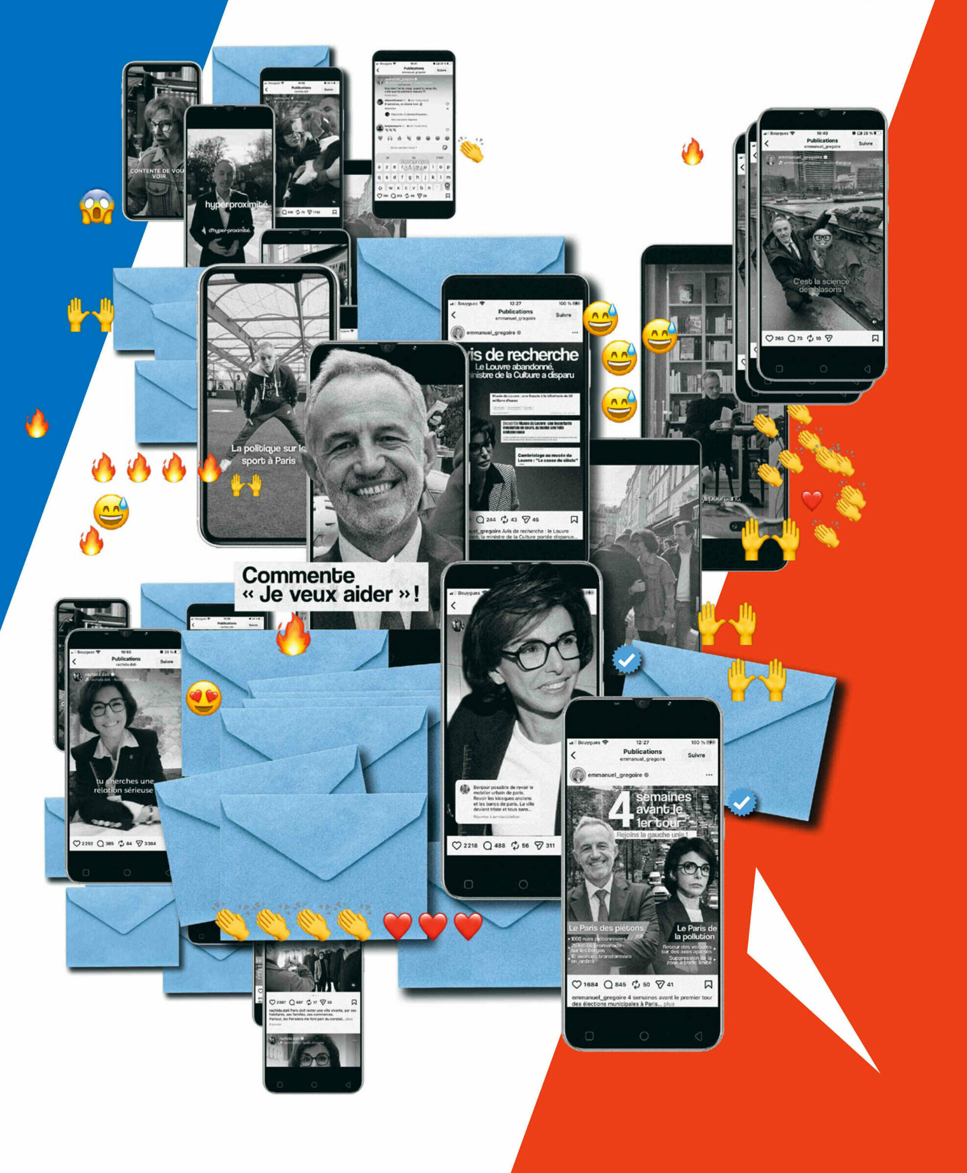À un mois jour pour jour du premier tour des élections municipales, Emmanuel Grégoire l’admet bien volontiers: il aurait dû sortir les crampons. Car ce dimanche 15 février, vers 17h, c’est avec une paire d’Adidas Samba blanche aux semelles “toutes glissantes” et bien peu adaptées au gazon synthétique du FIVE de la Porte d’Aubervilliers que le candidat socialiste à la Mairie de Paris se pointe pour un petit match de foot à cinq, avec son fils, quelques élus parisiens et des jeunes du quartier, sous les yeux du frère du rappeur Oxmo Puccino. Sans oublier ce drôle d’onzième homme sur le terrain, lui aussi sans crampons: caméra au poing, Nicolas tente de marquer Emmanuel Grégoire à la culotte tout en évitant les trajectoires hasardeuses du ballon. Le jeune vidéaste de 22 ans, engagé sur sa campagne, capture quelques instantanés de passes mal assurées pour alimenter sa prochaine vidéo, qui sera publiée sur Instagram dès le lendemain. “On a très vite compris qu’il fallait faire des vidéos pour toucher les moins de 25 ans et vulgariser notre programme, détaille Eva, la community manager en chef de la campagne, postée sur le bord du terrain, derrière la grille. Désormais, les jeunes s’informent beaucoup plus sur les réseaux, en regardant TikTok ou HugoDécrypte, qu’en lisant Le Monde .” Tout sauf un travail d’improvisation: sur l’écran de son portable, la jeune femme de 25 ans fait dérouler le script du jour, qu’elle a elle-même écrit et minutieusement séquencé.