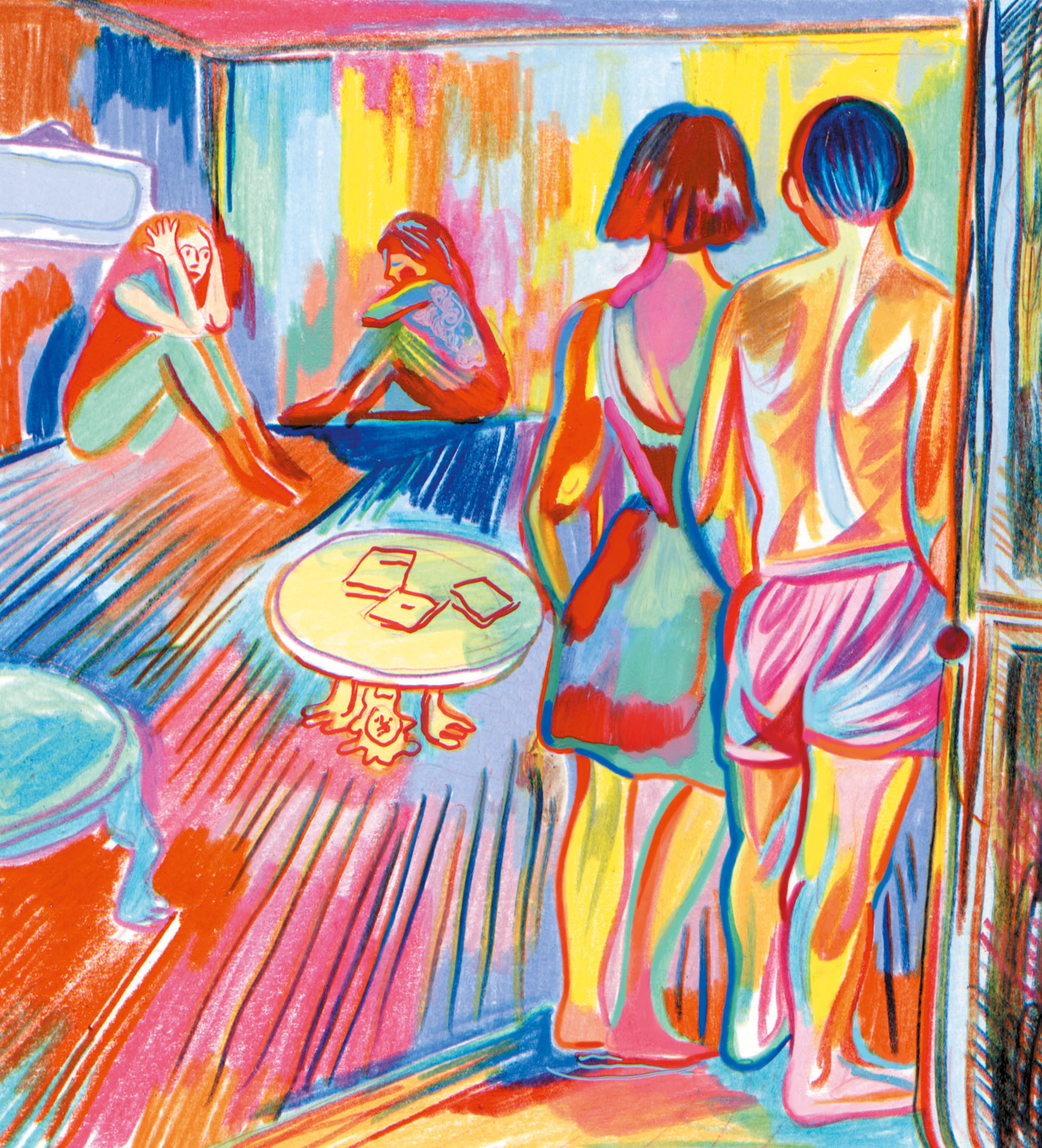 Elle n’était qu’une jeune peintre, mais elle avait déjà un style, et un sujet de prédilection: le corps nu des adolescentes. Et c’est pour développer ce talent et l’affiner qu’après avoir appris auprès d’une de ses idoles, le peintre et sculpteur Eric Fischl, elle s’était inscrite à la New York Academy of Art. Nous étions en 1993. L’une de ses œuvres les plus abouties, à cette époque, montrait un homme regardant une femme allongée sur un sofa depuis l’encablure d’une porte –une peinture inspirée, disait-elle, par le célèbre tableau Intérieur d’Edgar Degas, connu parfois sous le nom du Viol. Elle choisit de l’exposer lors du vernissage organisé à l’occasion de sa remise de diplôme. Ce jour-là, dans la galerie, Eileen Guggenheim, la doyenne de l’école, la présenta à Jeffrey Epstein et à sa compagne, Ghislaine Maxwell. Elle lui conseilla de leur vendre le tableau, en leur faisant au passage un rabais. Eileen Guggenheim dit aujourd’hui ne garder aucun souvenir de cette rencontre, mais Maria Farmer, elle, s’en souvient parfaitement. Elle raconte qu’à la suite de cet échange, elle reçut un appel de Jeffrey Epstein. Le milliardaire lui proposait un job –acheter de l’art en son nom– et voulait lui passer une commande –concevoir l’entrée d’un hôtel particulier qu’il était en train de rénover. Maria Farmer était loin de s’en douter, mais ce fut, pour elle, le début d’un cauchemar qui continue encore aujourd’hui.